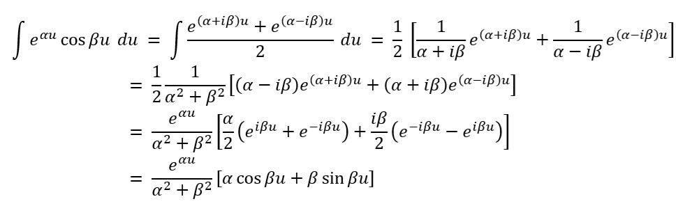 As a kind of lemma, we first derive the formula for integration of the product of an exponential function and a cosine function: