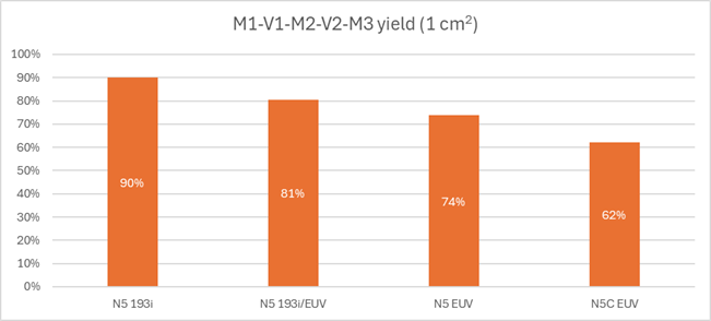 Figure 3. Estimated yields for 5nm (all 193i/mixed 193i/EUV/all EUV single exposure/all EUV, including cuts).