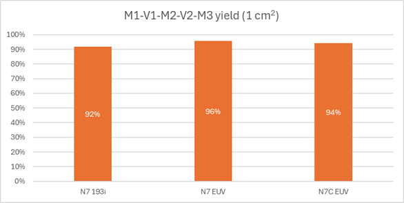 Figure 2. Estimated yields for 7nm (all 193i/all EUV single exposure/all EUV, including cuts).